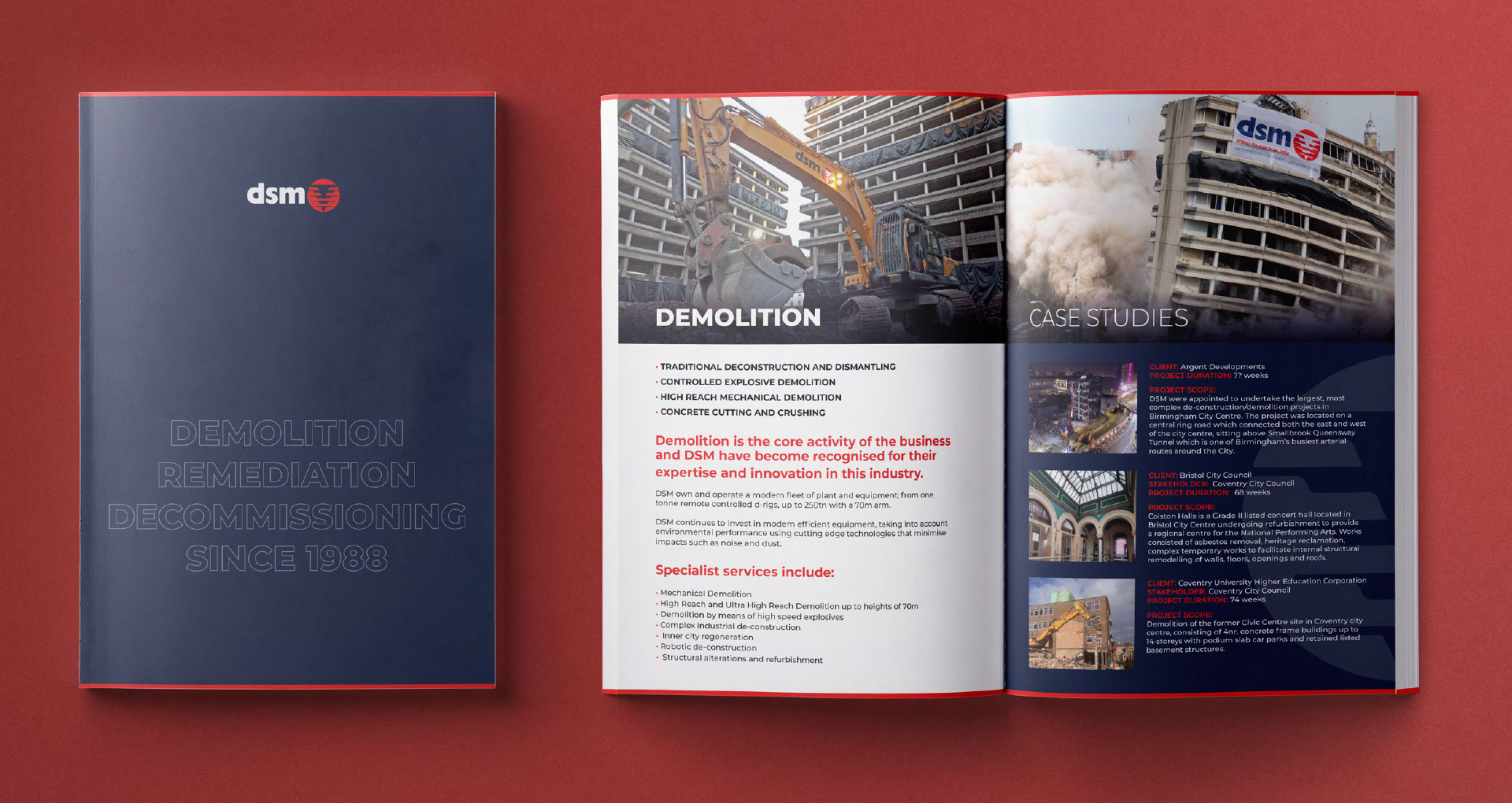 A dynamic and responsive website with an integrated suite of digital tools comprising content management system, CRM, video content and custom Web Apps for DSM, one of the UK’s leading demolition and decommissioning companies.